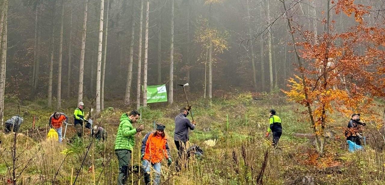 Mitarbeiterinnen und Mitarbeiter der ARJES GmbH engagierten sich gemeinsam mit ihren Angehörigen, um zusammen mit den Fachkräften des Thüringer Forstamtes Bad Salzungen und Mitgliedern der Save Nature Group Bäume zu pflanzen. Insgesamt packten etwa sechzig Freiwillige kräftig mit an, um die jungen Setzlinge umzusetzen. Nach Abschluss der Pflanzarbeiten versorgte die Feuerwehr Merkers die Beteiligten mit einer warmen Mahlzeit aus ihrer mobilen Feldküche und förderte so die gute Stimmung vor Ort.