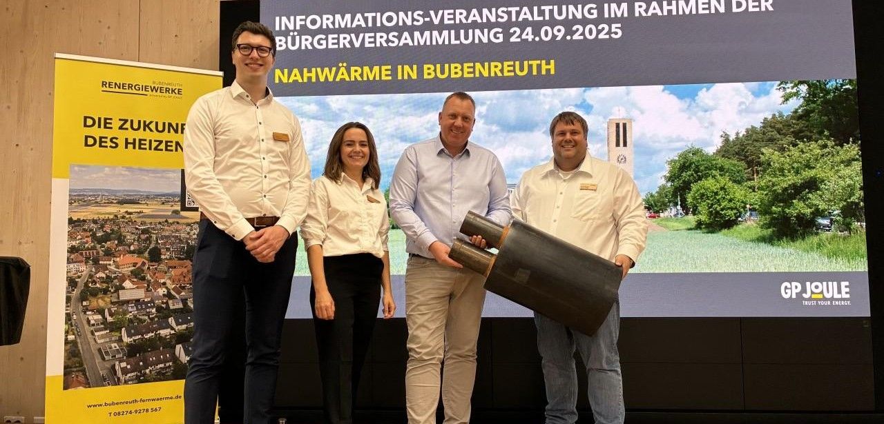 Im Rahmen einer Informationsveranstaltung im Kulturhof H7 stellten GP JOULE und die Renergiewerke Bubenreuth GmbH ihr Nahwärmenetz vor. Ab der Heizperiode 2027/28 wird eine 500-Kilowatt-Großwärmepumpe in Verbindung mit Pufferspeicher und Redundanzkessel umweltfreundlich Wärme bereitstellen. Teilnehmer Haushalte erhalten ein umfassendes Servicepaket, flexible Tarifoptionen und einen Anschlussbonus von 1.000 Euro bei Anmeldung bis Jahresende. Die halbe kommunale Beteiligung garantiert Mitbestimmung, reduziert Abhängigkeit von Energieimporten und steigert nachhaltig Komfort sowie Wertzuwachs vor Ort.