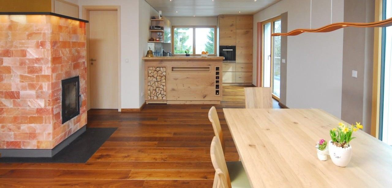 Schnelle Wärme und unsichtbare Technik dank Lehmplatten und Wärmepumpe